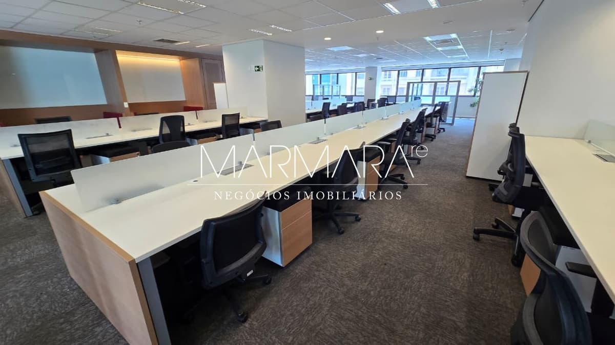 Andar inteiro mobiliado e equipado pronto para locação. A unidade possui alto padrão de acabamento, com recepção no hall de elevadores, open space amplo com estações de trabalho, piso elevado e carpete, ar-condicionado central instalado, forro de gesso, luminárias, divisórias com persianas. possui salas de reunião e para diretoria, cabines individuais para calls, sala de descompressão com TV, 4 conjuntos de banheiros e 1 copa moderna e equipada.. Excelente localização, pronta para abrigar o seu negócio ou para investimento! ... Ver mais